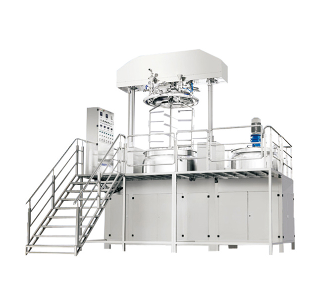 高剪切乳化機(jī)的物料微?;⑷榛⒒旌?、調(diào)勻、分散等可于短時(shí)間內(nèi)完成。鍋內(nèi)物料通過(guò)均質(zhì)機(jī)的高速內(nèi)循環(huán)剪切混合乳化,相向雙攪拌,順時(shí)針框式刮壁攪拌,逆時(shí)針漿式攪拌,刮板攪拌器在運(yùn)轉(zhuǎn)時(shí)產(chǎn)生離心作用,使四氟刮板緊貼鍋壁,有效的解決了鍋壁沾料問(wèn)題,不留死角,理想的變頻調(diào)速裝置可使其轉(zhuǎn)速任意無(wú)級(jí)調(diào)速。