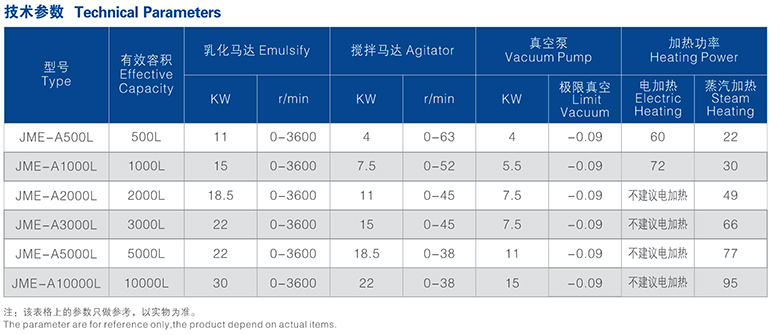 型號(hào):JME-A 雙缸式液壓升降下均質(zhì)真空乳化機(jī)(固定式)