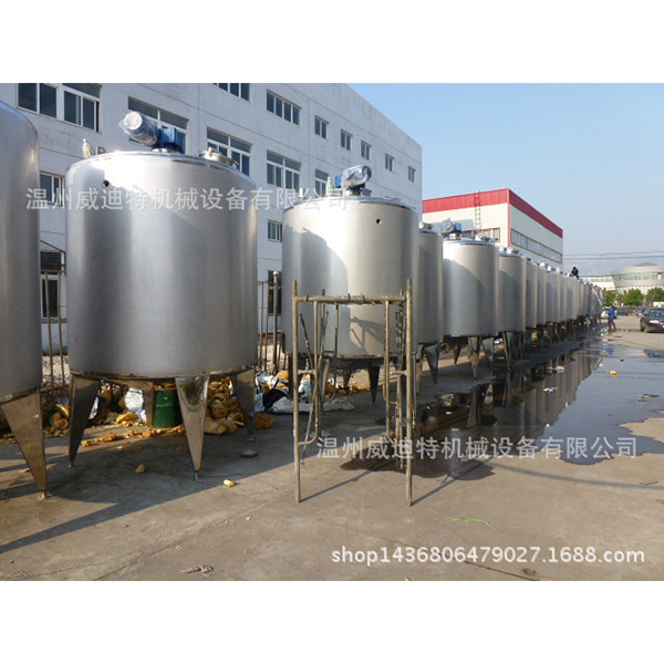 調配罐又名拌料缸、混料缸,有節能、耐腐蝕、生產能力強、清洗方便、結構簡單等優點,主要用于乳品和食糖及其它元素和各種藥物再配合后進行攪拌均勻作用,是乳品、飲料、制藥廠不可缺少的設備。采用材質為SUS304或316不銹鋼。